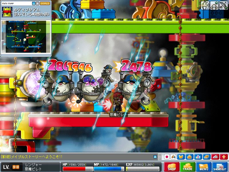 メイプルストーリーは、マイキャラがLV98になったであります。